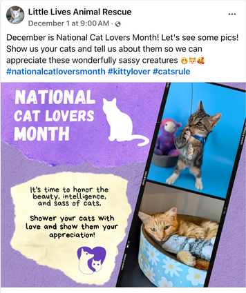 Social media posts developed for a nonprofit animal rescue to engage with followers
