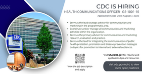 CDC social media graphics developed for LinkedIn to advertise open positions and inform on webinars and other events